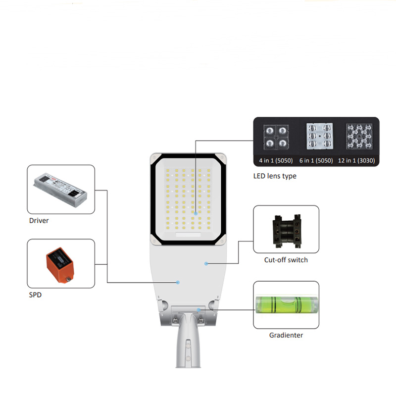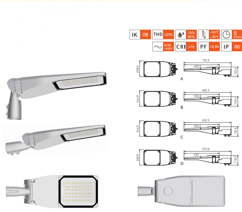 ৫ বছরের ওয়ারেন্টি ৫০ ওয়াট ৮০ ওয়াট ১০০ ওয়াট ১৫০ ওয়াট ২৪০ ওয়াট এলইডি স্ট্রিট লাইট, আইপি৬৬ ওয়াটারপ্রুফ ৩০০০ কে ৬০০০ কে সিটি এলইডি রোড লাইটিং