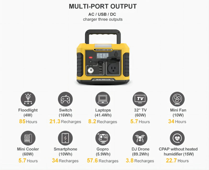 লিথিয়াম ব্যাটারি বৃহৎ ধারণক্ষমতার স্টোরেজ 500W পোর্টেবল পাওয়ার স্টেশন