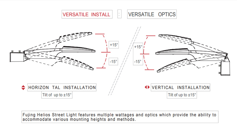 - অনুভূমিকভাবে এবং উল্লম্বভাবে ইনস্টল করা যেতে পারে, এবং সামঞ্জস্যযোগ্য কোণ ± 15 °